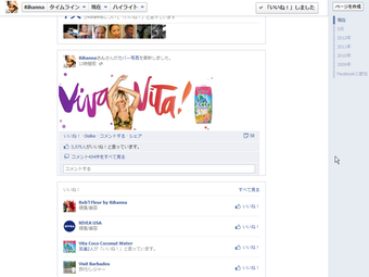 タイムライン式のプロフィールページを採用している場合は、以前のように時系列順の1列表示に変更することができます。検索ウィンドウの隣に緑色で「TL」と表示されるのでクリックするだけです。以前のレイアウトに慣れた人には見やすくなりますが、ページ右上のバナー広告は残ります。気に入らない場合はTLを再度クリックすれば2列表示のタイムラインに戻ります。